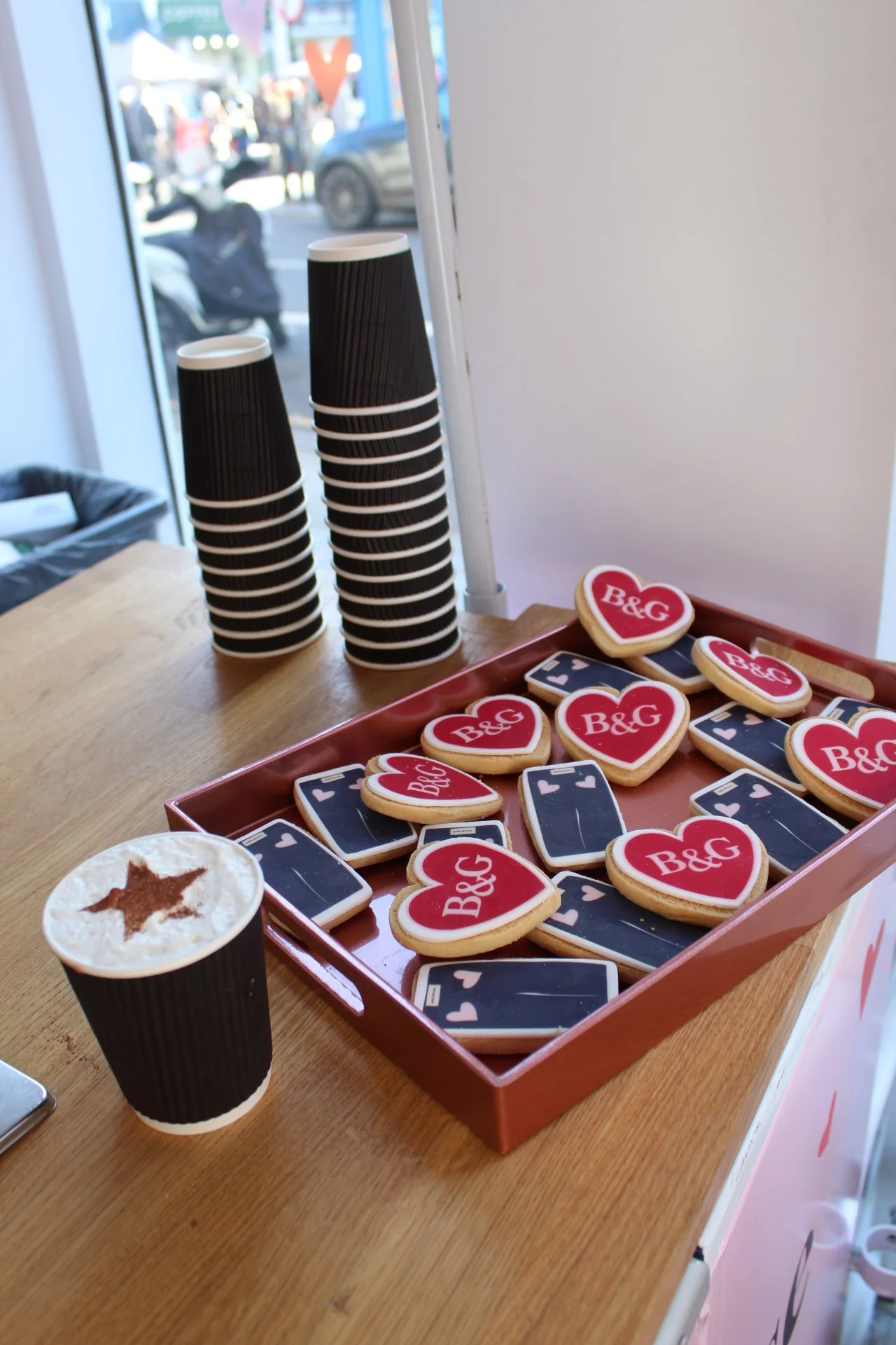 Hosted in Notting Hill, we provided indulgent hot chocolates topped with delicious whipped cream and a chocolate dusting of their iconic star print.Alongside this, we also created bespoke cookies to complement the experience, using their bold B&G logo and coveted signature joggers.