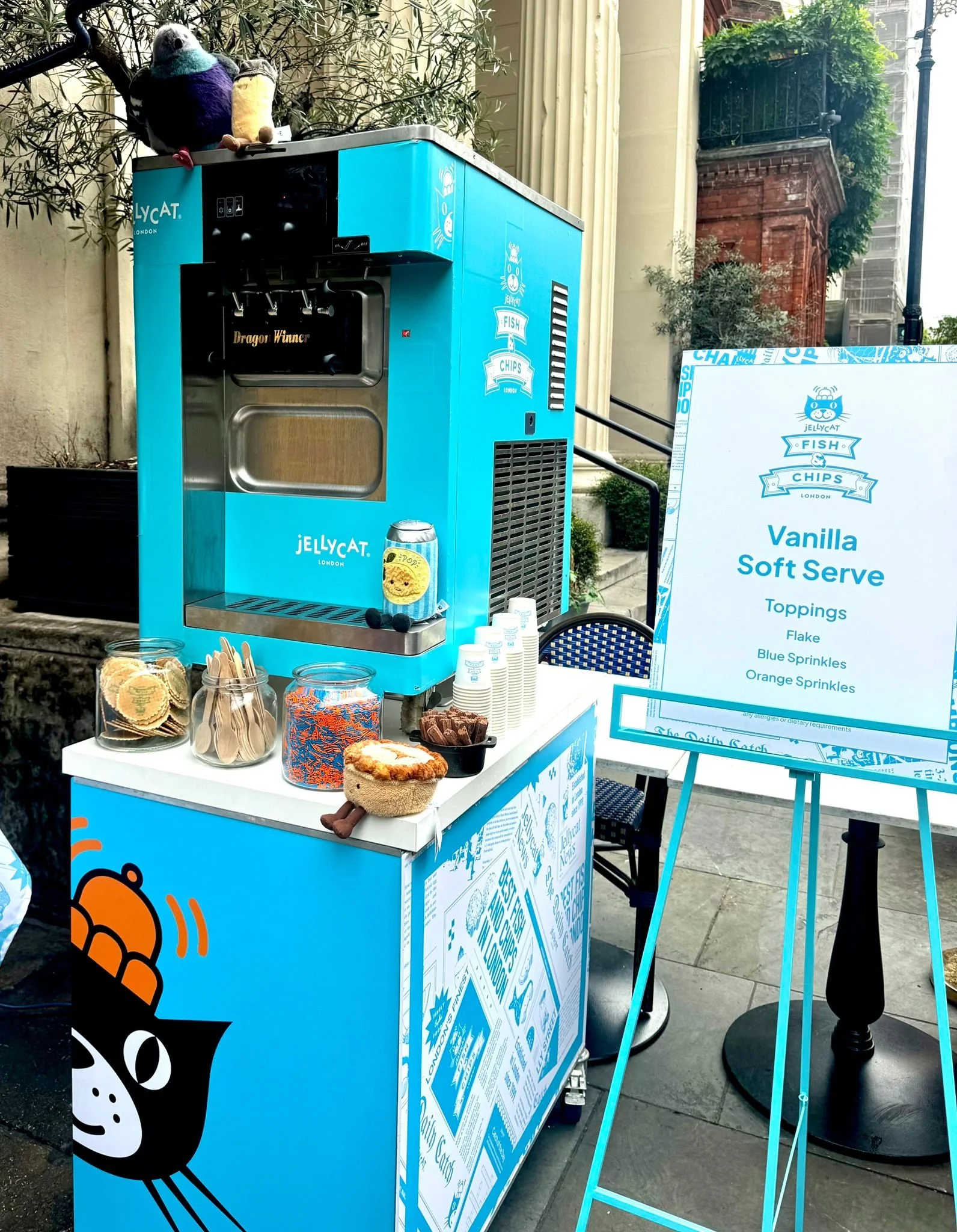To reflect Jellycat’s joyful and imaginative spirit, we served creamy vanilla soft serve ice cream topped with vibrant orange and blue sprinkles, creating a whimsical, on-brand treat.
