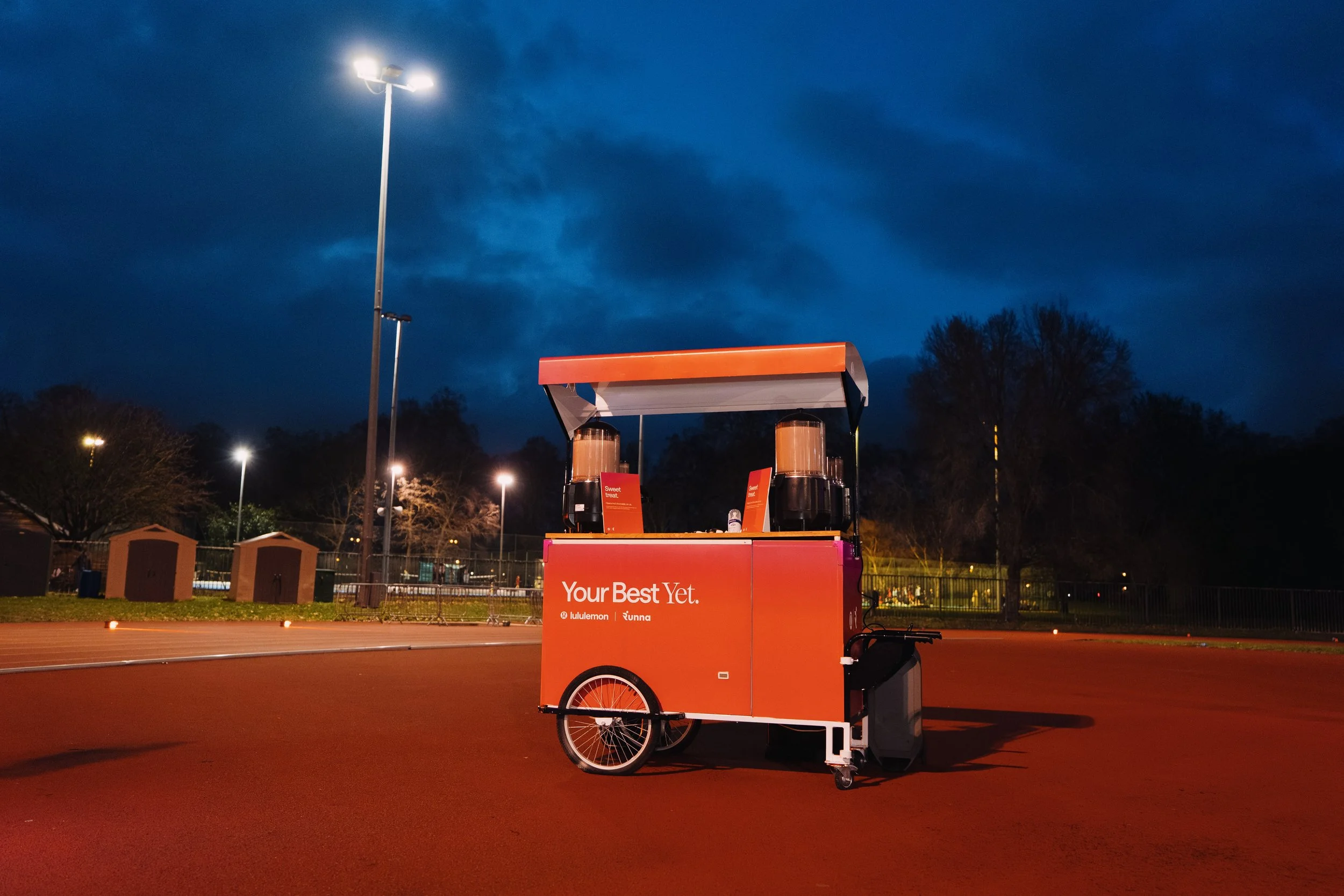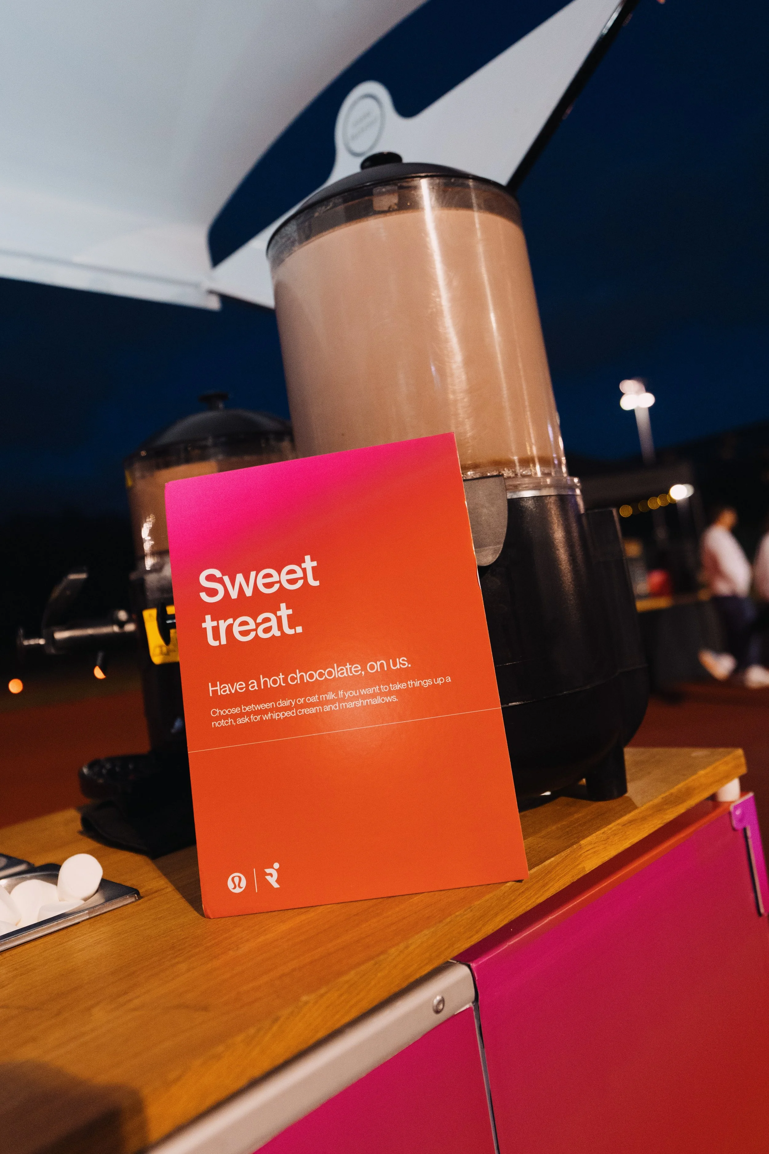 We provided our bespoke branded deluxe cart, and treated runners to indulgent hot chocolates - the perfect post-run sweet treat. Alongside this, we designed and built a bespoke bar for the gifting station - making it a seamless and elevated brand experience for every runner.