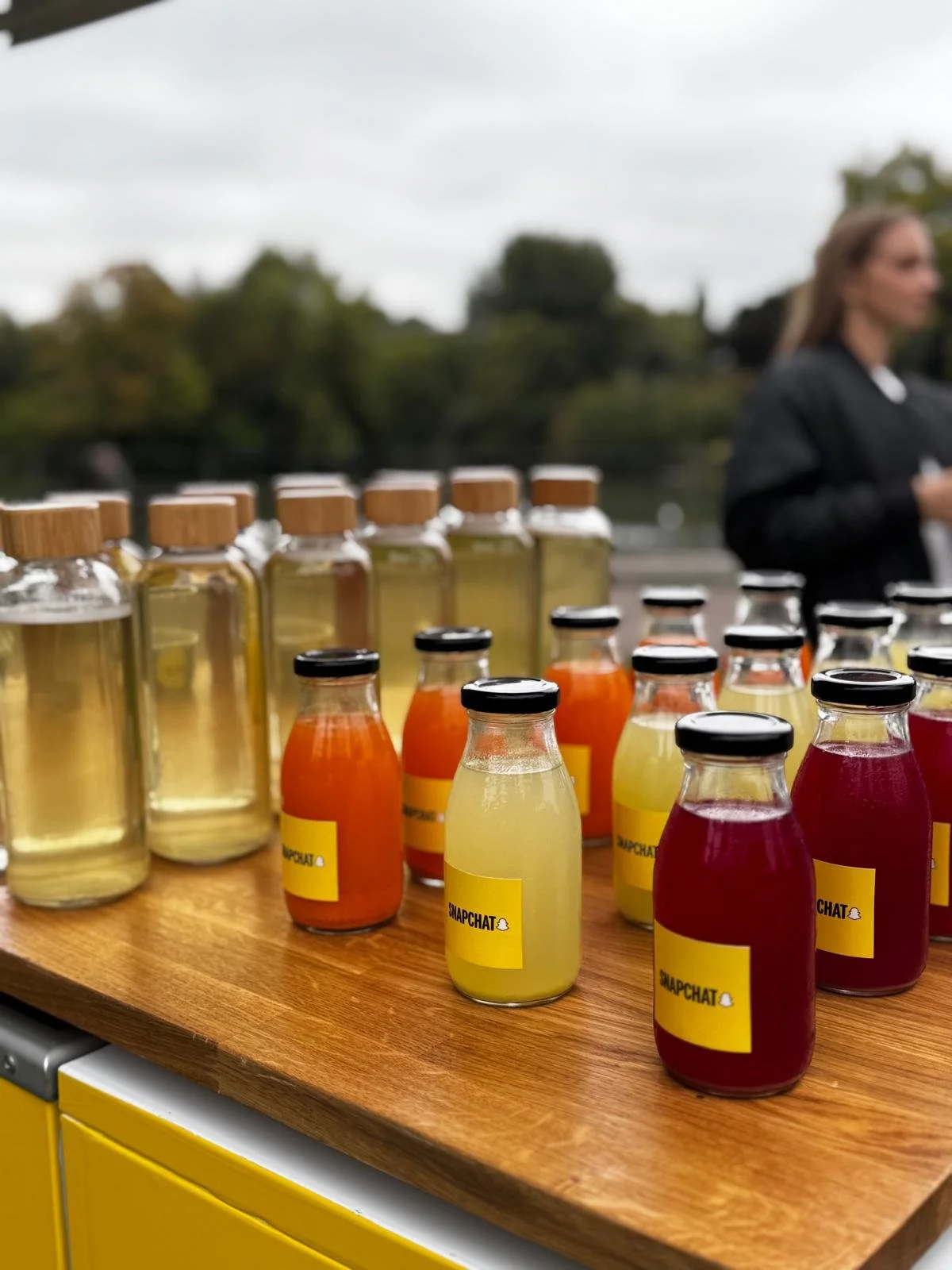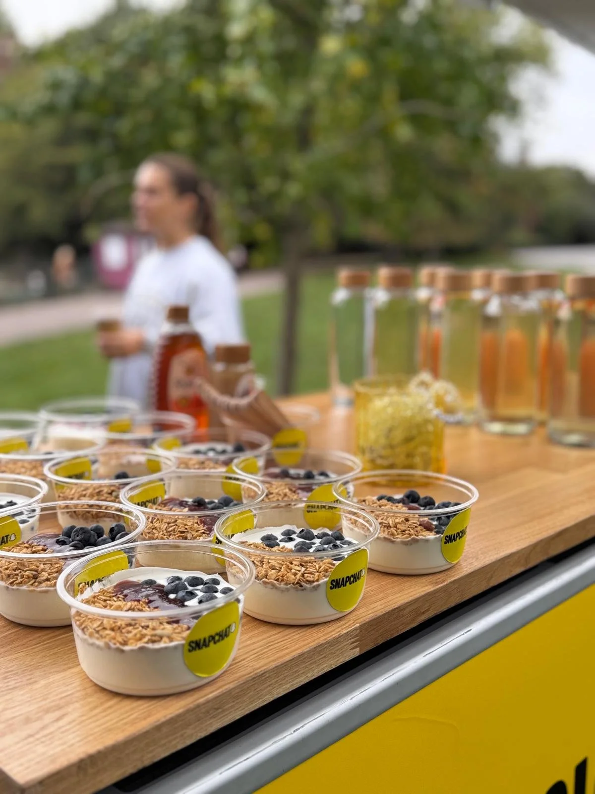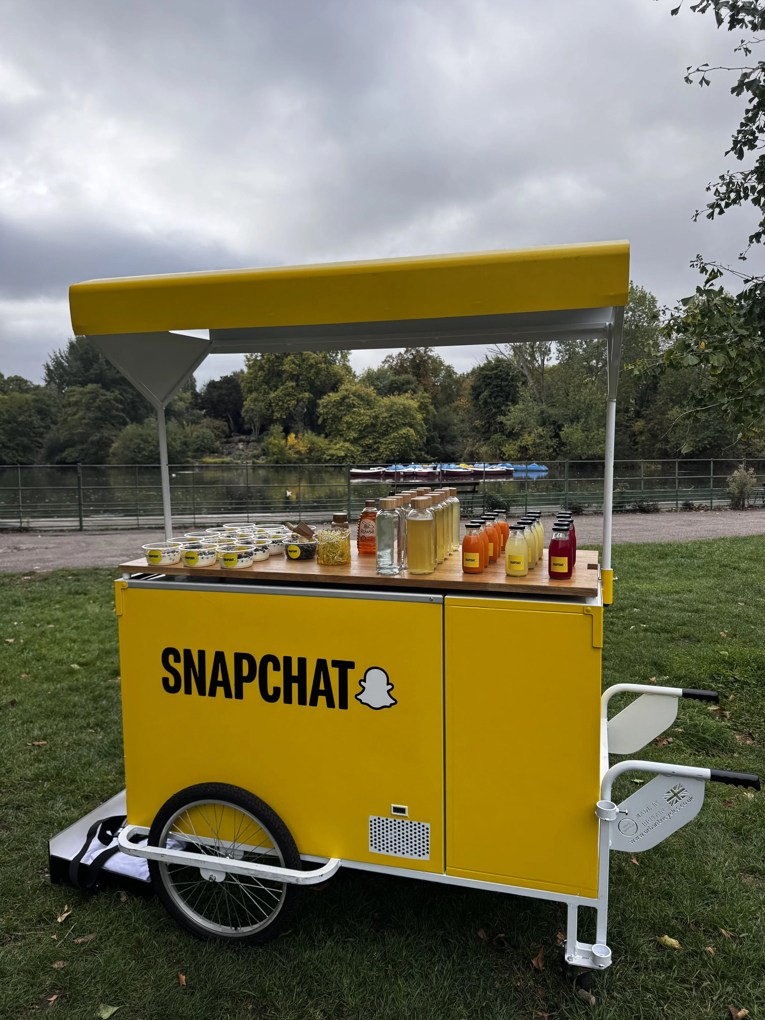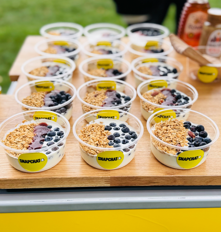 We took our deluxe cart, fully wrapped in Snapchat’s signature yellow, and served up fresh granola yoghurt bowls and branded juices to keep guests fuelled and refreshed.